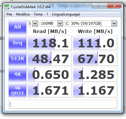 Questa è la configurazione in esame: - Scheda madre Asus P8B75M-LX (1 x sata III , 5 x sata II) - HD Seagate Barracuda ST500DM002 (Sata III, 500 Gb, 7200 rpm, 16 Mb) collegato sulla porta sata III. Antefatto: Installato i driver del pacchetto Intel Rapid Storage (ex Intel Matrix) ho continui problemi di rumorosità e stabilità di sistema. Notare che ho installato i driver più recenti. In pratica l'HD è rumoroso anche in idle (apparentemente non sta mai fermo) e di tanto in tanto in momenti del tutto casuali, il sistema freeza e non si riprende più. Nessun BSOD, nessun log nel registro eventi, semplicemente rimane la schermata fissa e nulla più. Succede mentre scambio files con periferiche esterne oppure quando il disco si spegne... Ho imputato la colpa all'IRS andando per esclusione. Da quando uso i driver di default di Win7 64, non ho più alcun blocco. Però, così facendo in gestione risorse mi ritrovo questa cosa qui: ...che non è proprio gradevole a vedersi. In pratica mi vede il disco rigido non come sata ma come IDE. Tengo a specificare che nel bios ho impostato prima di installare Seven in modalità AHCI. Infatti nella sezione disco ridigo: Ad ogni modo ciò che dice Windows mi interessa relativamente se poi il disco funziona correttamente e alla giusta (seppur scarsa) velocità. Tant'è che CrystalDisk Info mi da questa schermata: Interfaccia S-ATA Per scrupolo ho eseguito un test con CrystalDisk Mark 3.0.2 x64 impostando: - Test: 5 - Dimensione test: 100 MB Il risultato è questo: Il problema è che non ho trovato valori di riferimento con cui paragonare i miei in modo da capire se il driver di Windows 7 modifica le prestazioni del disco oppure no. So bene che sata 3 e AHCI su un disco tradizionale a 7200 rpm per giunta sono piuttosto inutili, quindi non sto qui a cavillar sul decimale, mi interessa solo capire se sono risultati che possono essere identificati come validi per un prodotto del genere oppure no. In teoria con il driver Intel dovrei ottenere risultati migliori anche se a googlare un po' se ne sentono di tutti i colori, specie con le ultime release. Che dite ? Non sono un po' bassini ? Sembrano più risultati di un sata II o forse non cambia molto tra sata II e sata III con un HD tradizionale ? Eppure l'ho collegato con il cavetto sata 6 Gb/s nell'unico connettore sata 6 Gb/s... P.s. Appena ho tempo provo l'SSD Samsung, tanto per riprendermi di spirito